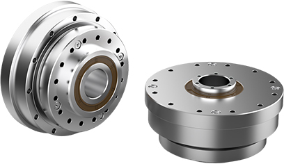 It features a hollow top-hat design with a large center hole. It uses a special oval-shaped wave generator and built-in roller bearings for smooth operation. The fully sealed unit is easy to install and perfect for applications needing cables to pass through its center.